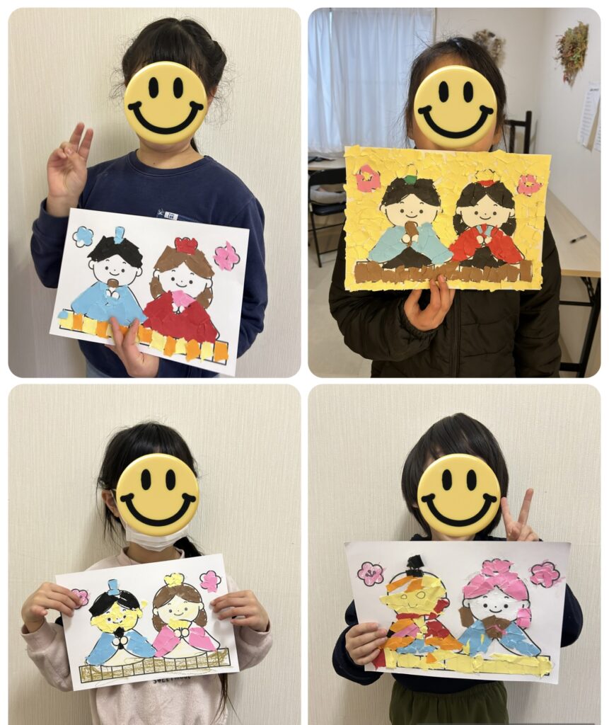 ちぎり絵 2026年3月3日 最終更新日時 : 2026年3月6日 アネラスタッフ 「ひな祭り」をテーマにちぎり絵の制作を行いました 短い時間の中でも一生懸命に取り組み、それぞれの特徴が表れた作品になりました
