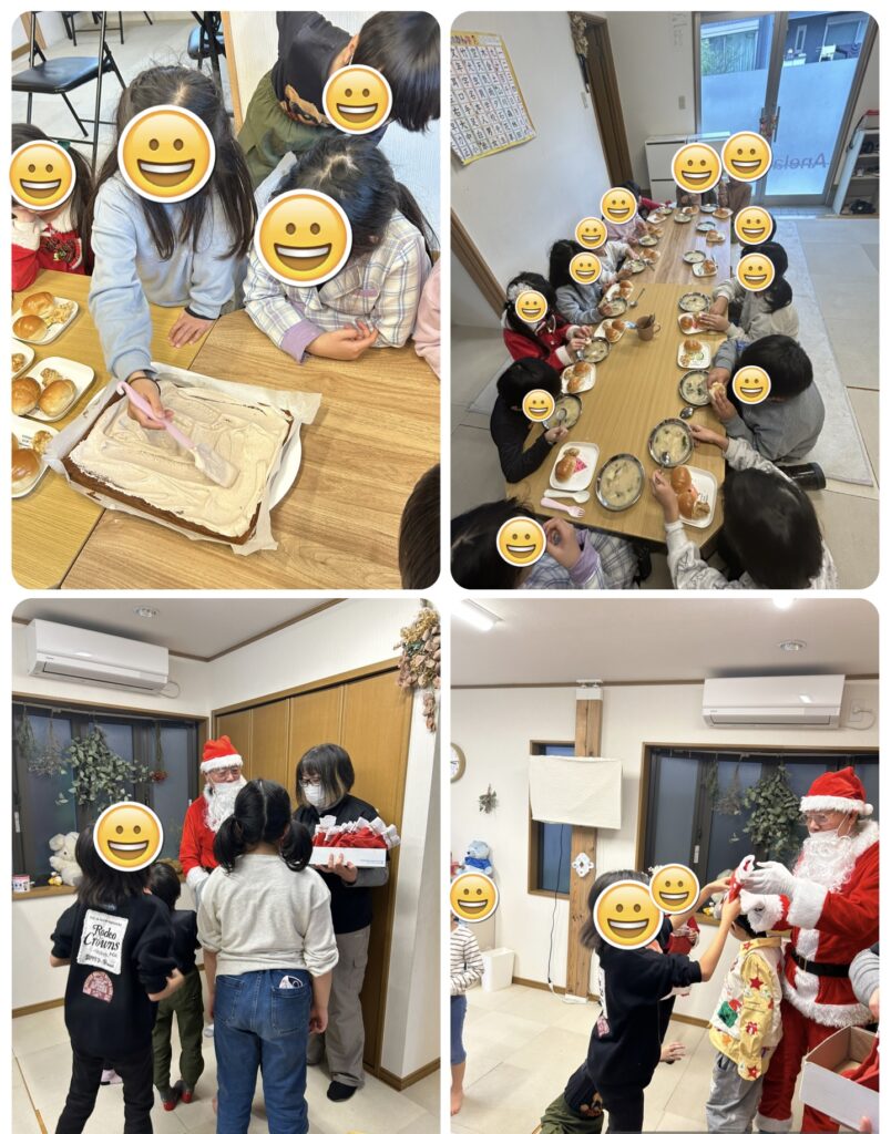 宝探しゲームや絵合わせゲーム、プレゼント交換など行い、最後はサンタのサプライズ登場で大盛り上がりの一日でした
