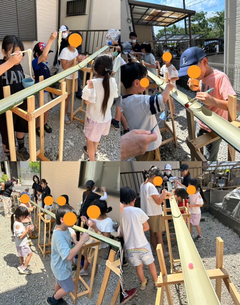 流しそうめん 2025年8月29日 最終更新日時 : 2025年8月29日 アネラスタッフ 今年も夏休みには流しそうめんです! みんなたくさん食べました そうめんだけでなく、ミニトマトやゼリーやスーパーボールが流れてきたり 早く取ろうと上流に陣取るも背が届かなかったり お箸で取れないとつい手が出てしまったり