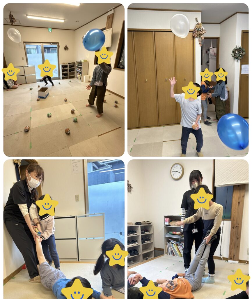 おやつを食べた後は、風船を使ったゲーム性のある運動や大根抜きをして大盛り上がりでした