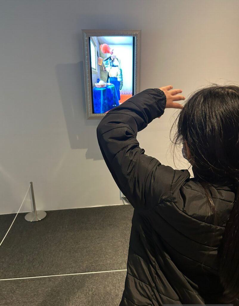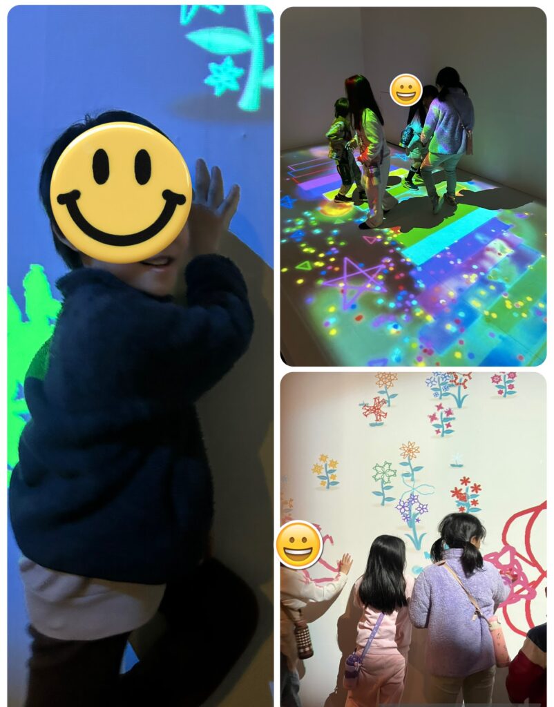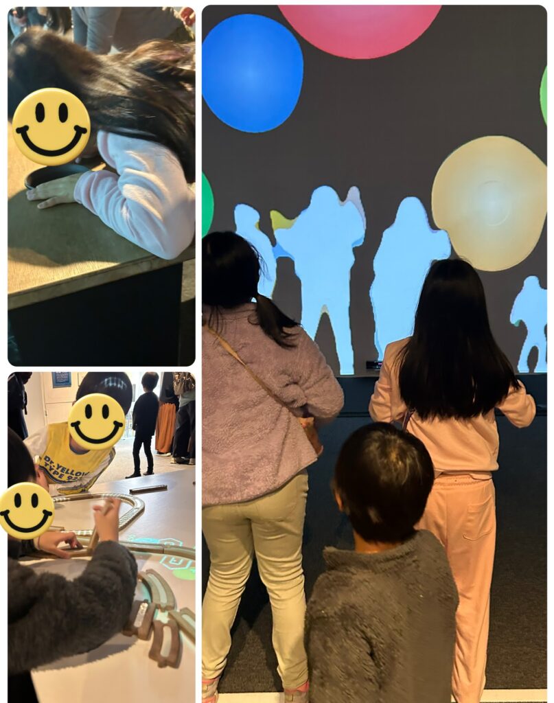 光を使ったアート作品に入り込み、身体を使ってその世界に入り込んでいました