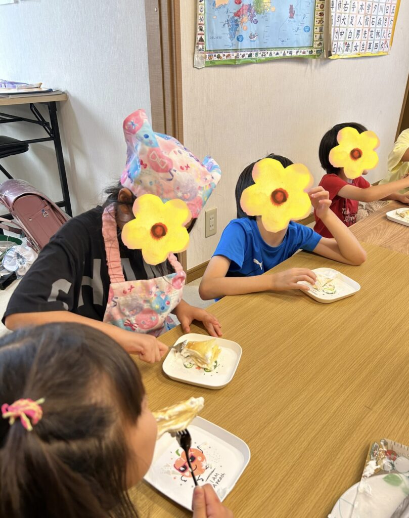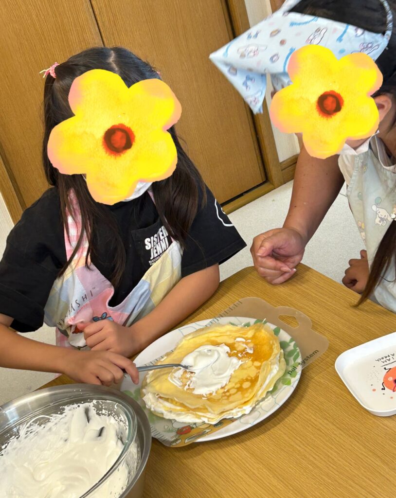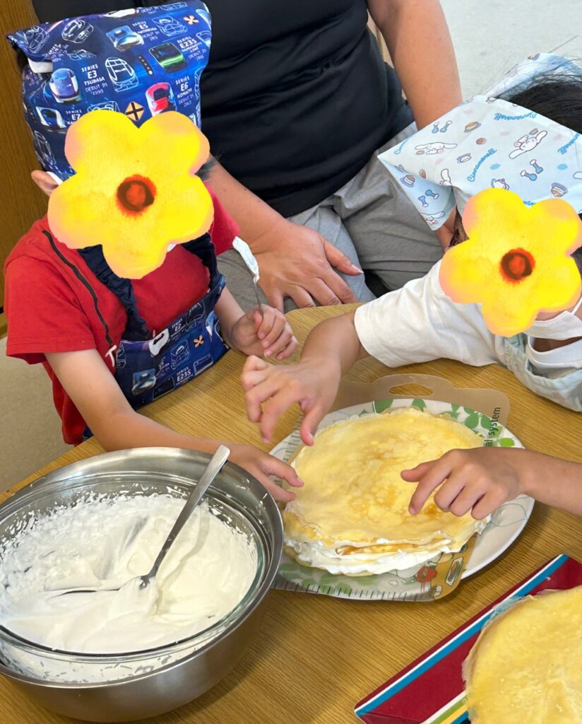 おやつはミルクレープ 2025年9月29日 最終更新日時 : 2025年10月3日 アネラスタッフ 最初にホイップクリームを手分けしてつくりました 次にあらかじめ用意したクレープにクリームを塗って重ねて作っていきます 仕上げに粉砂糖を振りかけて完成 みんなで美味しく食べました