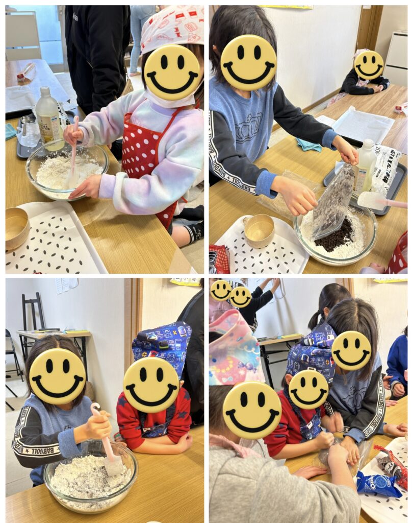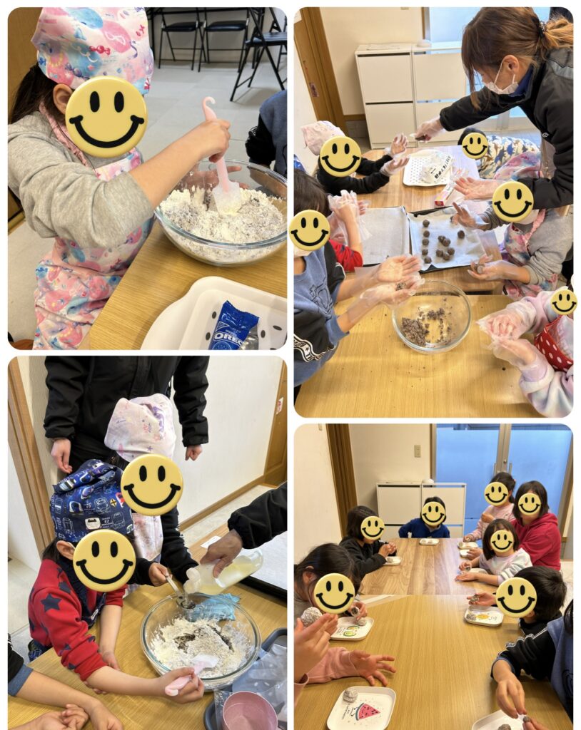 おやつ作り(ココアスノーボールクッキー) 2026年1月15日 最終更新日時 : 2026年1月20日 アネラスタッフ ココアクッキーを細かく潰し、薄力粉と片栗粉と一緒に混ぜます ひとまとめにしたら小さく等分に丸めて焼きます いつものクッキーとは違ったクッキーに興味津々で、あっという間に完食しました