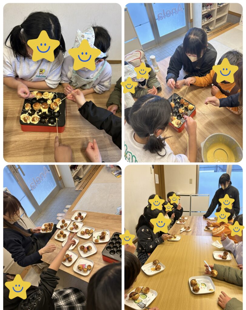 ベビーカステラ 2026年1月29日 最終更新日時 : 2026年2月18日 アネラスタッフ おやつにたこ焼き器を使って「ベビーカステラ」を作りました 生地を半分くらいまで入れて焼き、隣の生地と合体 最初は悪戦苦闘していましたが、だんだんと慣れていき、綺麗な丸い形になりました