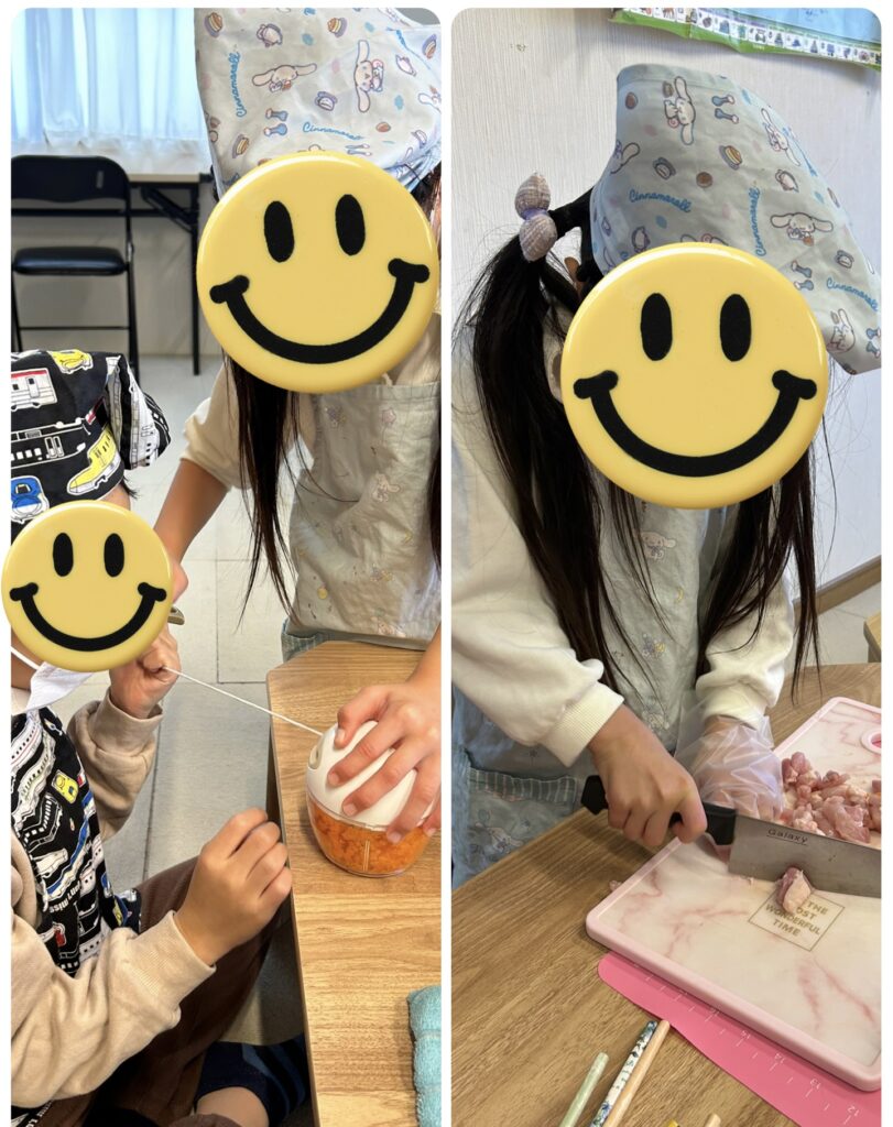 子どもたちが食材を切るところから始まります
