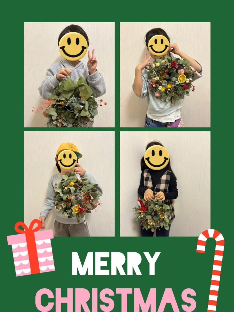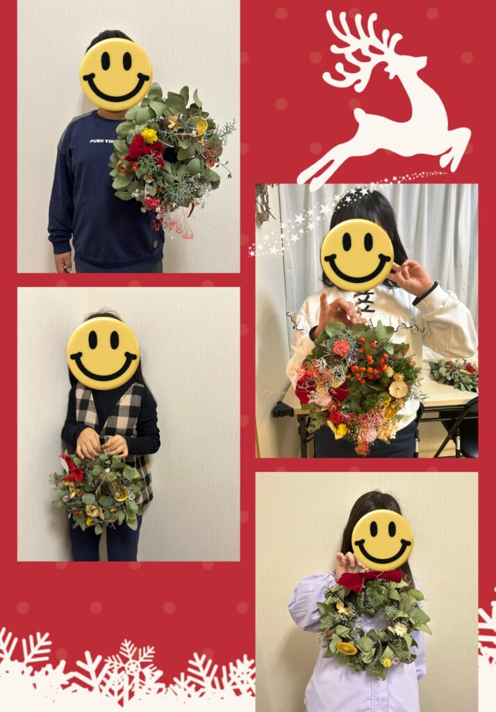 子どもたちが取り組んでいたクリスマスリースが完成しました